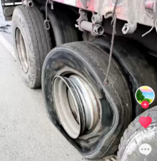 During driving, insufficient tire pressure or external factors such as scraping, foreign objects piercing the tread, or stones stuck between dual tires can cause air leakage or deflation. If the driver fails to notice in time or ignores the issue and continues driving for an extended period, it can lead to tire crushing. In severe cases, the tire may shred completely, and the worst-case scenario could result in a fire.