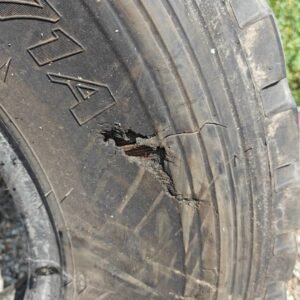 This injury typically occurs on the sidewall of the tire. During driving, stones trapped between the rear dual tires cause significant damage, resulting in large-area rubber abrasion on the tire sidewall and extensive steel wire breakage. The wound is larger compared to scrapes and cuts, with more steel wires broken.
