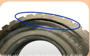 These injuries typically occur on the sidewall of the tire. During driving, the tire sidewall can scrape against the road surface or large stones in potholes, leading to minor steel wire breakage. The tire injury manifests as vertical cracks and visible friction marks on the sidewall rubber.