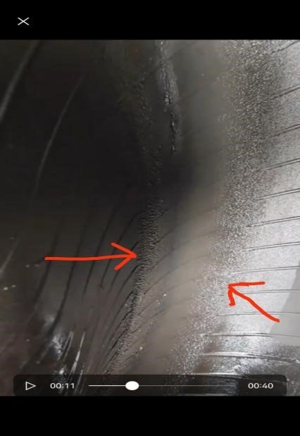 Images of the inner side of a tire that has undergone crushing secondary damage.