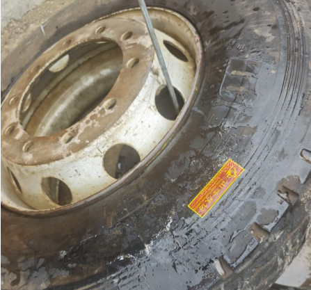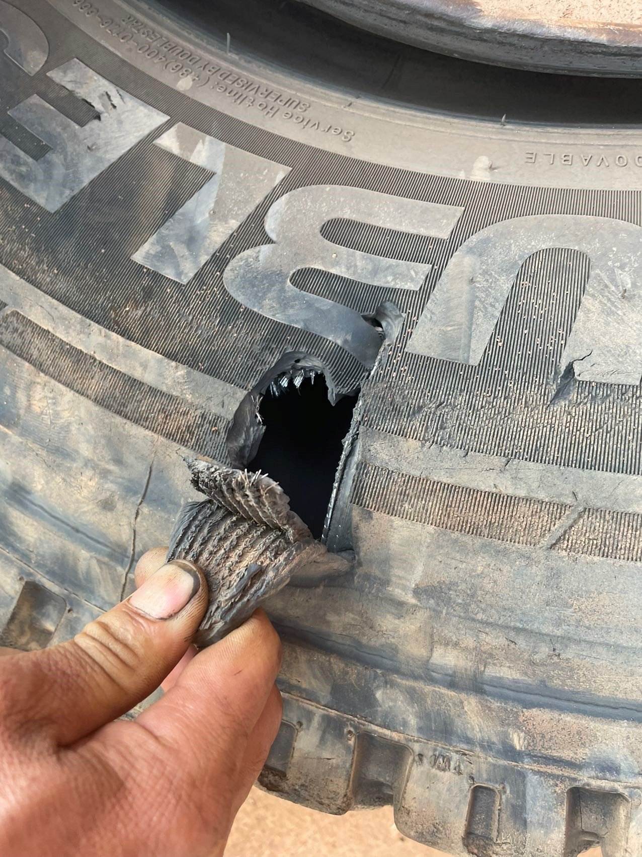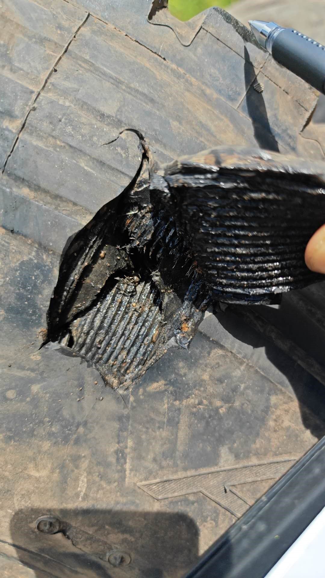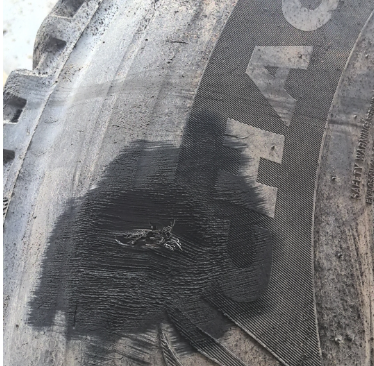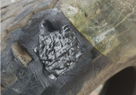 Images of a tire that can be repaired (the tire was not driven further after being damaged and has not suffered crushing damage).